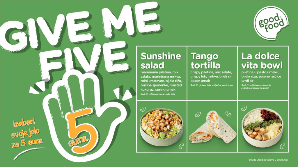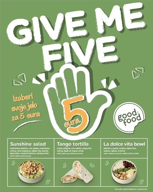 Enjoy the perfect blend of health and flavor at a price that deserves a top grade. We present GIVE ME FIVE – a special offer designed for everyone looking for a nutritious, quick, and affordable meal every day.